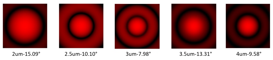 国内厂商——bw必威西汉姆联官网与天津大学的联合团队发现了造成这个困惑的根源:爱里斑的反常变化(ACAD)。通常我们都认为颗粒越小,爱里斑越大,于是颗粒大小与爱里斑大小之间有一一对应关系,所以粒度仪能够根据散射光的分布推算粒度分布。但事实上在有的粒径区间,会出现违反上述规律的情况:颗粒越小,爱里斑也越小。我们把这样的粒径区间叫做“反常区”。图4是根据Mie散射理论用数值计算的方法模拟出的聚苯乙烯微球的爱里斑的变化。图中粒径从3微米到3.5微米的爱里斑尺寸的变化就属于反常变化。对聚苯乙烯微球来说,3微米左右正好是在反常区,所以测量出现异常。研究论文发表于2017年。