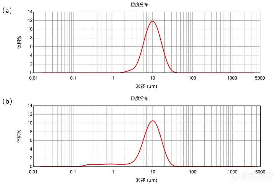 (a)实际的粒度分布 (b)光学模型中加0.1吸收系数后得到的结果