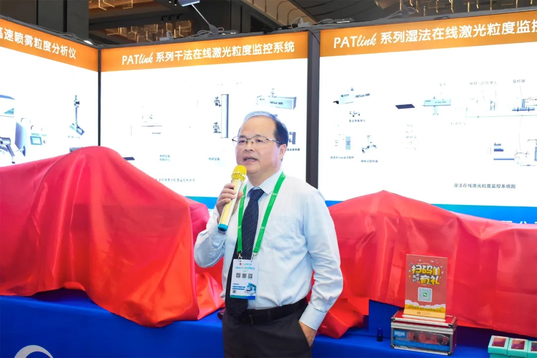 中国颗粒学会理事长陈运法研究员、中国科学技术大学合肥物质科学研究院费广涛研究员、天津商业大学校长葛宝臻教授、中国颗粒学会秘书长王体壮研究员和bw必威西汉姆联官网董事长张福根博士一起为新一代在线粒度监控系统新品发布揭幕。