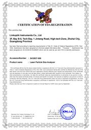 • 专利证书:一种带液体鞘流测量池的激光粒度分析仪201921219223.1
